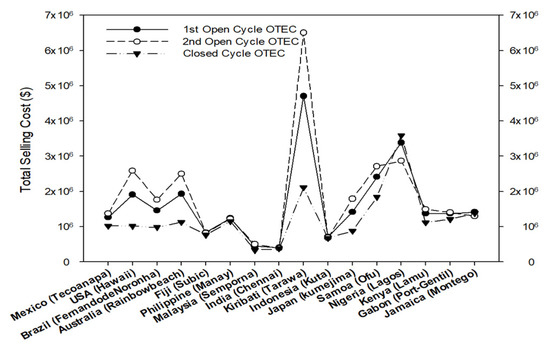Assuming a social discount rate of 5.5%, and assuming that the annual operating cost was 5% of the initial investment cost, when the single-stage OC-OTEC was applied to Kiribati at the scale of a 1 MW demonstration plant, it had an internal rate of return of 11.7%, which is economical. The country and model with the highest economic feasibility for the 10 MW class semi-commercial OTEC was Kiribati’s single-stage open-cycle model with a net present value of $322,499,000 and an internal rate of return of 26.1%. The 50 MW class commercialized OTEC showed the highest economic feasibility for the closed-cycle model in Nigeria, with an internal rate of return of 49.7% and a net present value of $1,621,012,000.
