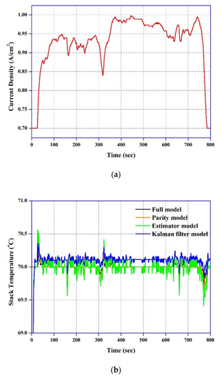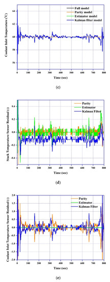 - The parity equation, state observer, and Kalman filter methods for fault detection were developed in this study. The temperature outputs of a nonlinear fuel cell system were monitored; then, estimated linear model outputs were compared with those of the nonlinear fuel cell system to generate a residual. The generated residuals were evaluated by the CUSUM method to identify the presence of a sensor fault.