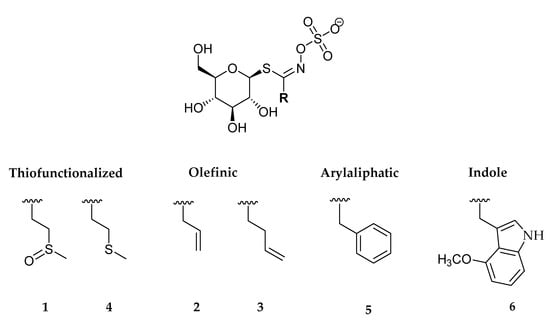 - Blažević, I.; Montaut, S.; Burčul, F.; Olsen, C.E.; Burow, M.; Rollin, P.; Agerbirk, N. Glucosinolate structural diversity, identification, chemical synthesis and metabolism in plants. Phytochemistry 2020, 169, 112100. [Google Scholar] [CrossRef] [PubMed]