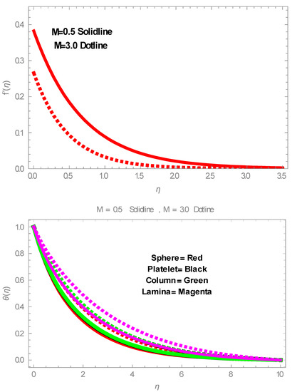 - Lin, Y.; Li, B.; Zheng, L.; Chen, G. Particle shape and radiation effects on Marangoni boundary layer flow and heat transfer of copper-water nanofluid driven by an exponential temperature. Powder Technol. 2016, 301, 379–386. [Google Scholar] [CrossRef]