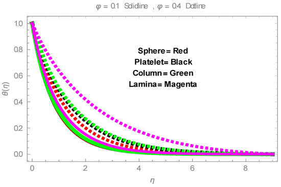 - The nanoparticles of lamina shape play a significant role in the disturbance of temperature profile.