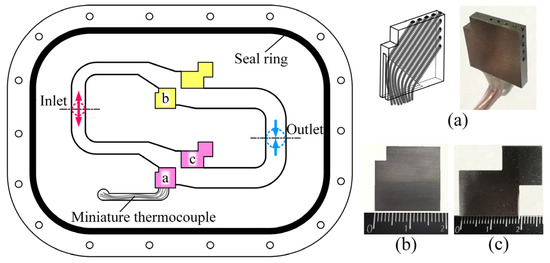 Parallel valve orifice experimental model: (a) Temperature measurement part; (b) Micro observation part; (c) Valve orifice assembly part.