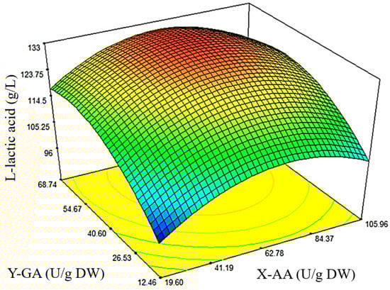 | Run | X-AA (U/g DW) | Y-GA (U/g DW) | L-Lactic Acid (g/L) | |