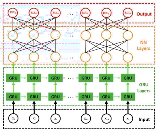 - Chen, J.; Jing, H.; Chang, Y.; Liu, Q. Gated recurrent unit based recurrent neural network for remaining useful life prediction of nonlinear deterioration process. Reliab. Eng. Syst. Safe. 2019, 185, 372–382. [Google Scholar] [CrossRef]