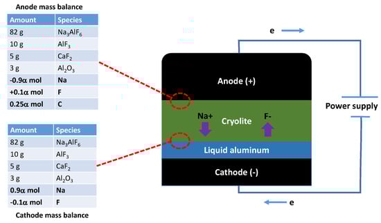 - Gheribi, A.E.; Salanne, M.; Zanghi, D.; Machado, K.; Bessada, C.; Chartrand, P. First-Principles Determination of Transference Numbers in Cryolitic Melts. Ind. Eng. Chem. Res. 2020, 59, 13305–13314. [Google Scholar] [CrossRef]