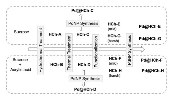 - Duarte, T.A.G.; Favier, I.; Pradel, C.; Martins, L.M.D.R.S.; Carvalho, A.P.; Pla, D.; Gómez, M. Tetraalkylammonium Functionalized Hydrochars as Efficient Supports for Palladium Nanocatalysts. ChemCatChem 2020, 12, 2295–2303. [Google Scholar] [CrossRef]