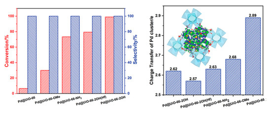 - Chen, D.; Yang, W.; Jiao, L.; Li, L.; Yu, S.H.; Jiang, H.L. Boosting Catalysis of Pd Nanoparticles in MOFs by Pore Wall Engineering: The Roles of Electron Transfer and Adsorption Energy. Adv. Mater. 2020, 2000041, 1–6. [Google Scholar] [CrossRef]