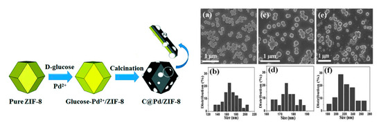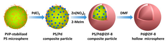 - Zhao, Y.; Ni, X.; Ye, S.; Gu, Z.G.; Li, Y.; Ngai, T. A Smart Route for Encapsulating Pd Nanoparticles into a ZIF-8 Hollow Microsphere and Their Superior Catalytic Properties. Langmuir 2020, 36, 2037–2043. [Google Scholar] [CrossRef] [PubMed]