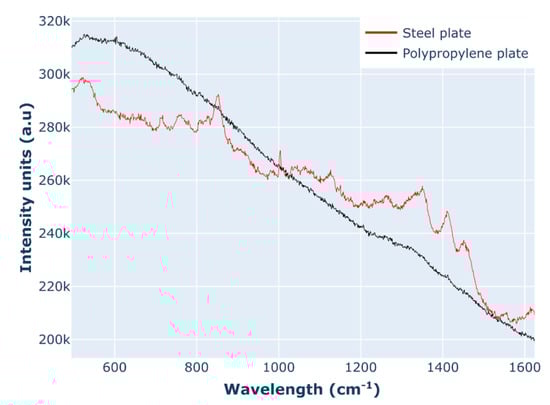 All the spectral measurements were performed using the InVia confocal Raman microscope (Renishaw, Wotton-under-Edge, UK) equipped with a 785 nm laser. Prior to spectral measurements, the acquisition settings were optimised in respect to the focal point, sample volume, laser output, and duration of measurements. Measurements of the cell culture were performed in the range of 381 to 1534 cm−1 using a 10% laser power (30 mW), 30 s acquisition time, 5 accumulations, and line-focus using a 5X objective (Leica Microsystems, Wetzlar, Germany). For each sample, 350 µL of culture was spun down to remove cells, and 300 µL of supernatant was used for the acquisition. The data acquisition was performed using polypropylene (PP) 96-well plates (Greiner Bio-one, Stonehouse, UK) using the Microplate mapping option of the WiRe 5.2 software (Renishaw, Wotton-under-Edge, UK). Data acquisition for the CEX samples was performed similarly to the cell culture samples, with a difference in acquisition range (605–1741 cm−1). Additional experiments were performed comparing the signal from the PP 96-well plates with the signal from stainless steel plates, which were custom-made. The acquisition was further optimised using a long-distance 50X objective (Leica Microsystems, Wetzlar, Germany), increasing the laser power to 100%, and decreasing the acquisition time to 10 s and 3 accumulations.