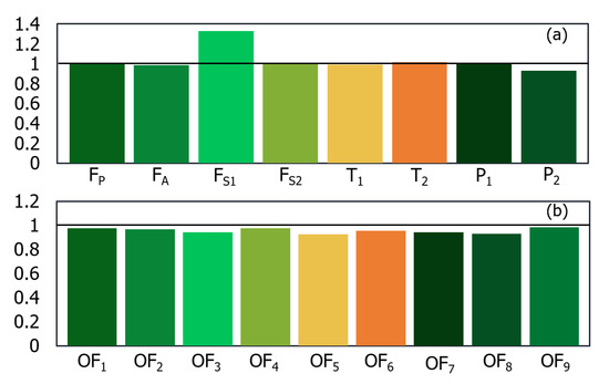 Best ranked solution for (a) decision variables and (b) objective functions using NFM with ANN, normalized with respect to the best solution of the phenomenological model.