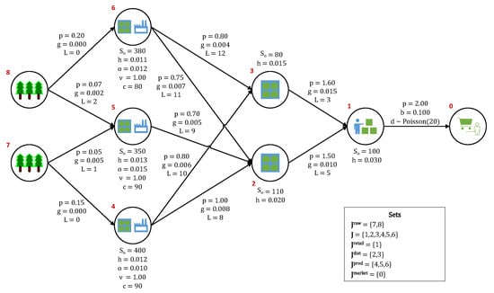 Supply Chain Network Schematic with Network Parameters used in the Case Study.