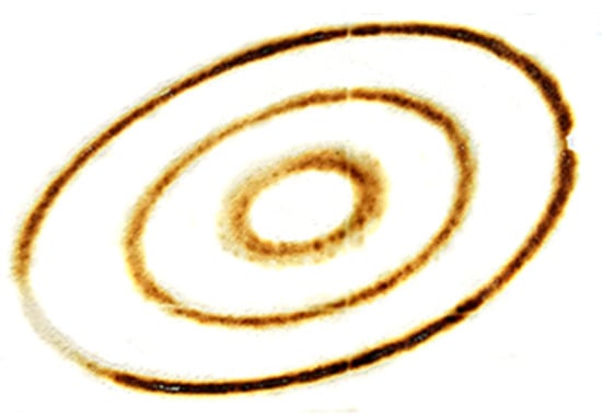 The multifunctional EB controller maintained the required values of the accelerating voltage (Eb) and the EB current (Ib) within the ranges given in Table 1 and controlled the scanning system, which supported the necessary uniformity and stability of the reaction zone at sufficiently high EB power. The scanning system (12) (Figure 1) was combined with injection window (4) and installed at the window exit. By programming the controller the EB raster of necessary shape could be formed by scanning the EB in cross-sections of the reaction chamber. Besides, the local beam power input was controlled in the longitudinal direction z by varying the EB initial divergence angle. In fact, the raster pattern was a concentric ellipses system (Figure 2) and the ellipses orientation was adjusted to the reaction chamber rotation speed and direction.