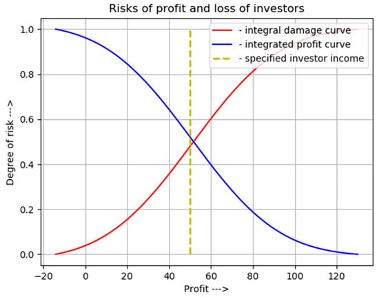 Based on the received distribution of profit of investors of projects of production of raw materials for bioethanol from wheat (Figure 4) integral curves of profit and loss for investors under the set requirements (minimum profit) are constructed (Figure 5).