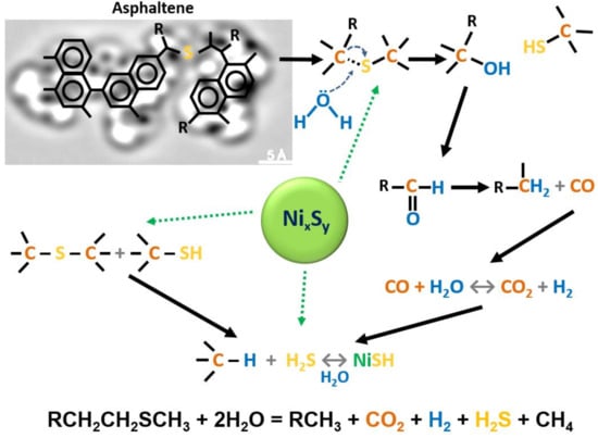 - Almao, P. In situ upgrading of bitumen and heavy oils via nanocatalysis. Can. J. Chem. Eng. 2012, 90, 320–329. [Google Scholar] [CrossRef]