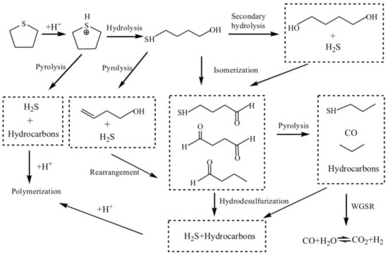 - Lin, R.; Chen, K.; Miao, M.; Zhang, L.; Wang, X.; Jiang, Y.; Zhang, J.; Wang, Y.; Pan, H. Reaction mechanism of H2S generation during tetrahydrothiophene aquathermolysis reaction. Energy Fuels 2020, in press. [Google Scholar] [CrossRef]