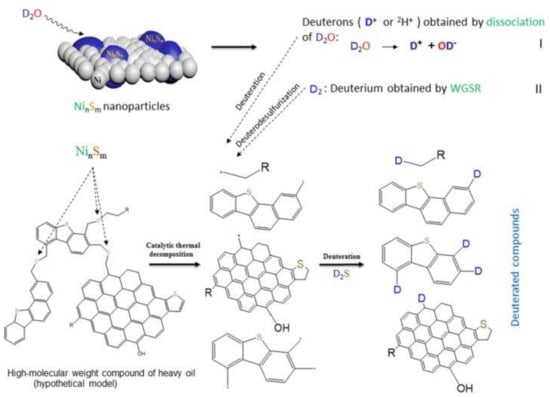 - Al-Muntaser, A.A.; Varfolomeev, M.A.; Suwaid, M.A.; Feoktistov, D.A.; Yuan, C.; Klimovitskii, A.E.; Gareev, B.I.; Djimasbe, R.; Nurgaliev, D.K.; Kudryashov, S.I.; et al. Hydrogen donating capacity of water in catalytic and non-catalytic aquathermolysis of extra-heavy oil: Deuterium tracing study. Fuel 2021, 283, 118957. [Google Scholar] [CrossRef]