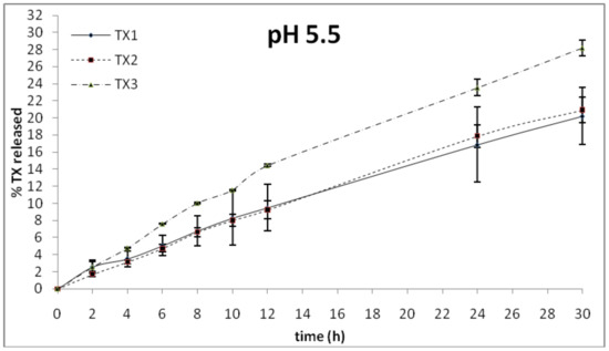 TX release profiles at pH 5.5.