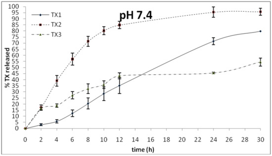 The TX release profiles at pH 7.4.