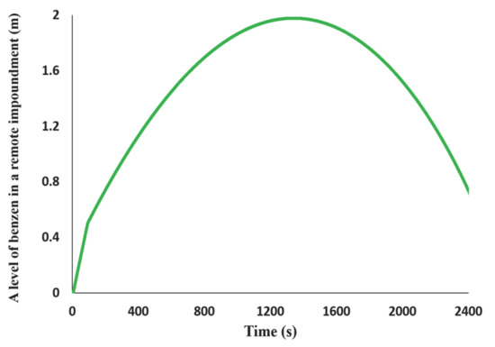 Figure 6 shows the level of benzene in the remote impoundment in the case when the capacity of Pump 2 is 238 m