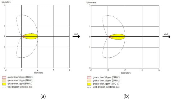 Figure 8 shows the results of ERPG-2 with and without a proposed mitigation system when the leak in the HF vessel occurs. The simulation conditions for ALOHA are listed in