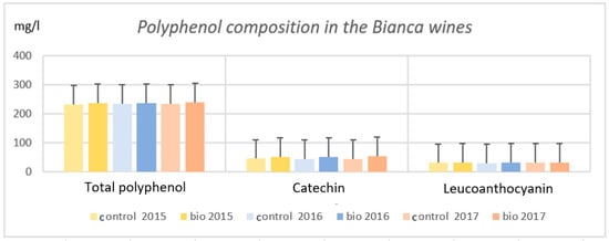 Polyphenol composition in the “Bianca” wines, 2015–2017.