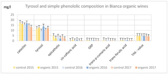 Tyrosol and simple phenolic composition in the “Bianca” organic wines, 2016–2017.