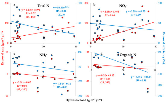 - Bastviken, S.K.; Weisner, S.E.B.; Thiere, G.; Svensson, J.M.; Ehde, P.M.; Tonderski, K.S. Effects of vegetation and hydraulic load on seasonal nitrate removal in treatment wetlands. Ecol. Eng. 2009, 35, 946–952. [Google Scholar] [CrossRef]