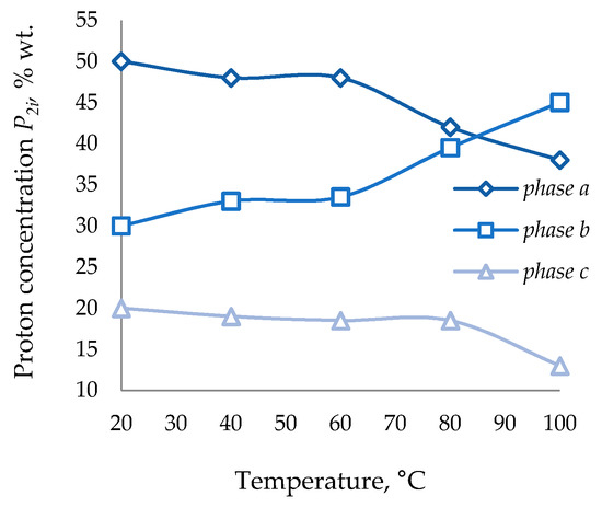 - No substantial changes in the values of proton concentration P2i of phases in a fairly wide temperature range.