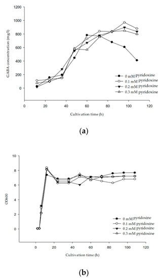 - Su, L.; Huang, Y.; Wu, J. Enhanced production of recombinant Escherichia coli glutamate decarboxylase through optimization of induction strategy and addition of pyridoxine. Bioresour. Technol. 2015, 198, 63–69. [Google Scholar] [CrossRef] [PubMed]