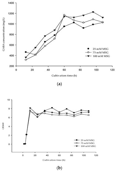 - Jong, A.; Yong, C.C.; Oh, S. Bioconversion of gamma-aminobutyric acid from monosodium glutamate by Lactobacillus brevis Bmb5. J. Microbiol. Biotechnol. 2019, 29, 1745–1748. [Google Scholar] [CrossRef] [PubMed]