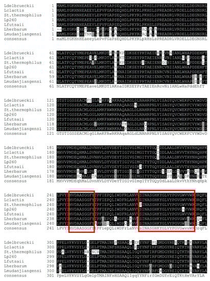 2.6. Overexpression of GADLbFNCC260 in E. coli and Protein Purification