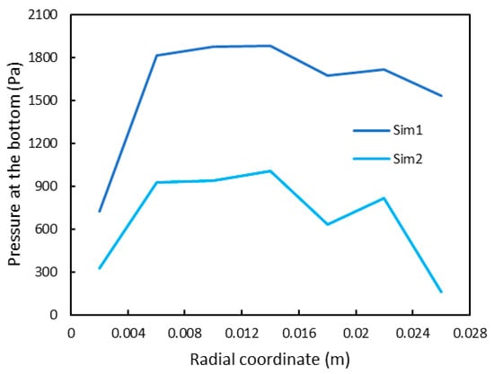 Solid pressure in the radial and vertical direction along the height of the column for Sim1 (left plot) and Sim2 (right plot).
