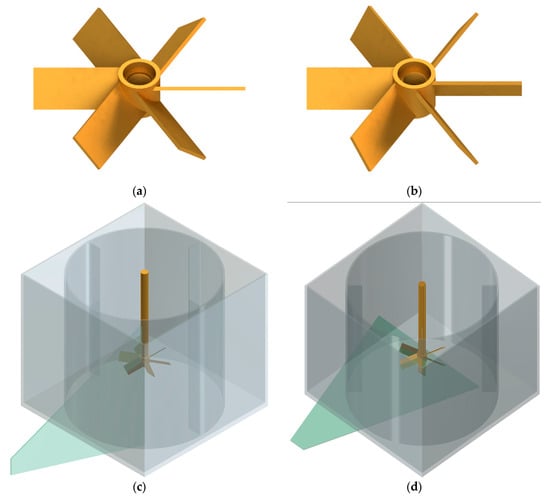 - Ge, C.-Y.; Wang, J.-J.; Gu, X.-P.; Feng, L.-F. CFD simulation and PIV measurement of the flow field generated by modified pitched blade turbine impellers. Chem. Eng. Res. Des. 2014, 92, 1027–1036. [Google Scholar] [CrossRef]
