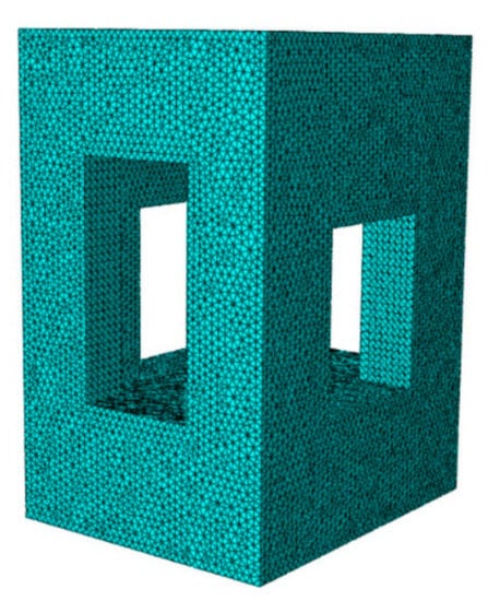 The structure of a 6300 KN COF machine can be seen in Figure 1. The COF machine is made of carbon structural steel (Q235). The elasticity modulus, Poisson ratio and the density of material are 210,000 MPa, 0.31 and 0.00000000785 t/mm3, respectively. The finite element mesh of the COF machine is shown in Figure 2. The mesh element type is a quadratic tetrahedral element C3D10. The total number of nodes and elements is 369,524 and 219,114, respectively.