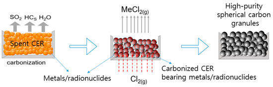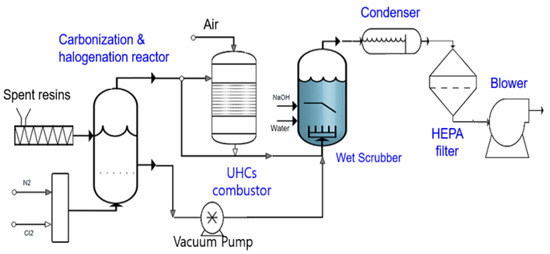 Yang, H.-C.; Park, H.-O.; Park, K.-T.; Kim, S.-J.; Kim, H.-J.; Eun, H.-C.; Lee, K. Development of Carbonization and a Relatively High-Temperature Halogenation Process for the Removal of Radionuclides from Spent Ion Exchange Resins. Processes 2021, 9, 96. https://doi.org/10.3390/pr9010096
