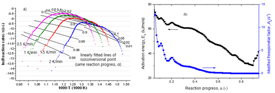 - Vyazovkin, S.; Burnham, A.K.; Criado, J.M.; Pérez-Marqueda, L.A.; Popescu, C.; Sbirrazzuoli, N. ICTAC Kinetics Committee recommendations for performing kinetic computations on thermal analysis data. Thermochim. Acta 2011, 520, 1–19. [Google Scholar] [CrossRef]