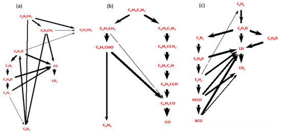 - Chiara, S.; Alessio, F.; Alberto, C.; Tiziano, F.; Eliseo, R. A wide range kinetic modeling study of pyrolysis and oxidation of benzene. Combust. Flame 2013, 160, 1168–1190. [Google Scholar]