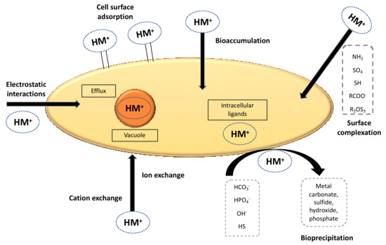 3.1. Mechanisms of Heavy Metals Removal by Microorganisms