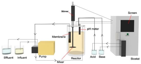 Schematic diagram of the submerged membrane reactor attached to a bench top BIOSTAT system.