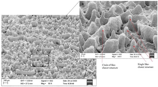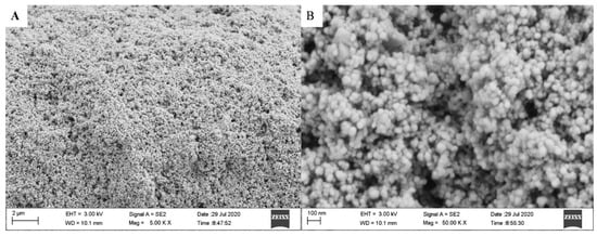 The thin film’s surface characterization at the maximum amount of coated TiO2 was investigated at the Western Nanofabrication Facility at Western University. Morphological properties: surface morphology and texture were studied by scanning electron microscopy (SEM) using a microscope LEO (Zeiss) 1540 XB FIB/SEM. The thin film of TiO2 was analyzed at an accelerating voltage of 6 kV, with different working distances and magnification factors. Prior to analysis, the film was dried and coated with a thin layer of conductive material (Osmium) using an Osmium Plasma Coater (Filgen OPC80T).
