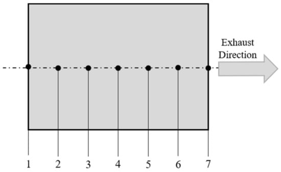 Schematic diagram of the DPF temperature simulation points. 1. S1 2. S2 3. S3 4. S4 5. S5 6. S6 7. S7.