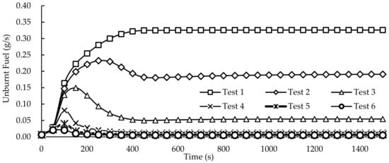 Unburnt fuel analysis with different oxygen concentrations.