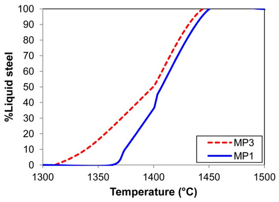 Solidification curves for MP1 and MP3 weld metal compositions (FactSage 7.3).