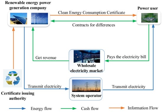 In addition, users who sign the PPA can obtain a “clean energy consumption voucher” provided by the renewable energy enterprises. The energy flow is shown in Figure 1.