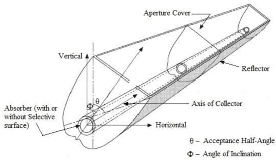 - Kim, Y.; Han, G.; Seo, T. An evaluation on thermal performance of CPC solar collector. Int. Commun. Heat Mass Transf. 2008, 35, 446–457. [Google Scholar] [CrossRef]