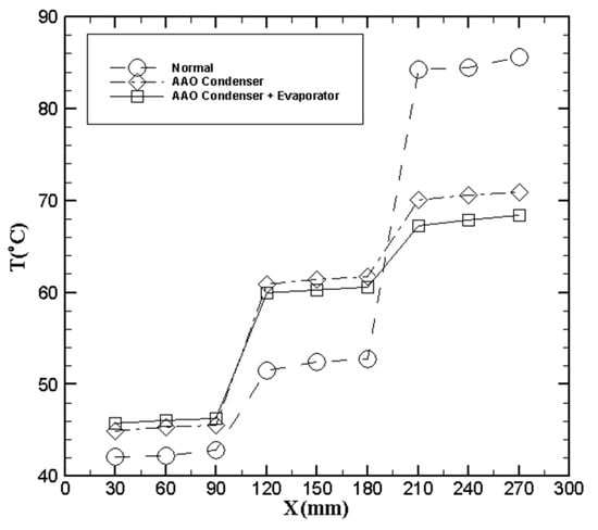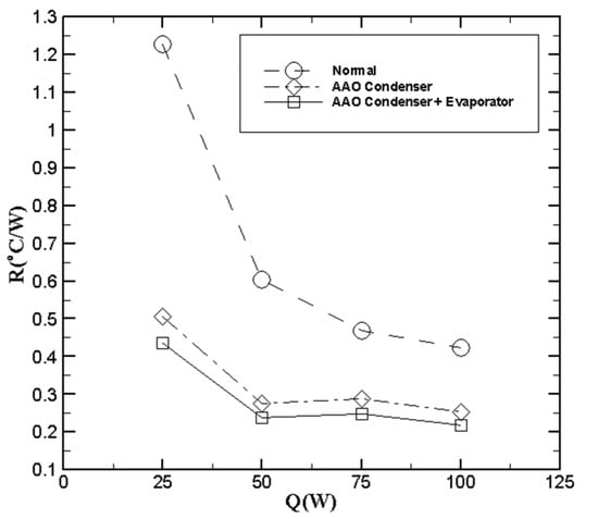 - The generation of AAO nanostructure both on the inner surfaces of the condenser section and evaporator section can further reduce the temperature variation in the eat pipe and the overall thermal resistance of the heat pipe by 13.70% and 13.83%, respectively.