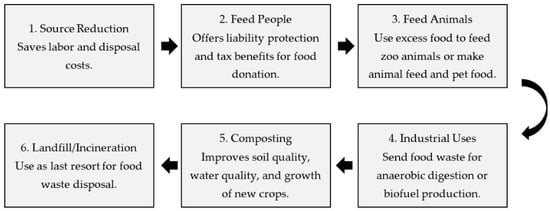 Priorities of the food recovery hierarchy, from most desirable (1) to least desirable (6). Adapted from [].
