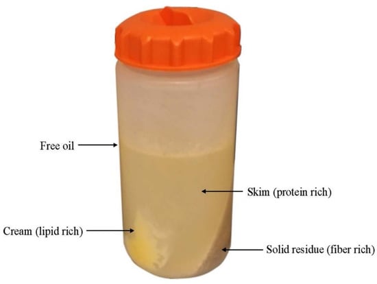 Regardless of the matrix, AEP usually has lower yields than the ones obtained with organic solvents; however, some research studies have shown competitive recovery yields up to 96% [,]. Pre-treatments are commonly applied prior to aqueous extractions, and all have the same goal of breaking down/softening the seed matrix to increase oil recovery. For example, roasting seeds can improve yields because applying heat to the substrate can rupture cell walls and allow for better oil release []. Thus, using the optimized roasting temperature and time of wild almonds led to an oil extraction yield of 35% (w/w) []. Flaking and extrusion prior to aqueous extraction can also promote increased cell disruption, allowing for better water penetration and release of entrapped compounds. For the aqueous extraction of soybeans, oil extraction yields improved significantly when using extruded full fat soybean flakes (68%) compared to non-treated soybean flakes (60%) []. Some pretreatments were shown to specifically improve free oil recovery. Flaxseed kernels pretreated with 0.3 M citric acid and dried at 70 °C for 1 h prior to aqueous extraction led to the development of a thinner cream layer and increased the free oil yields from 19 to 83%. This significant increase in free oil recovery was related to the ability of the acid treatment to affect protein properties, which led to the coalescence of oil bodies and size reduction in protein bodies []. Furthermore, different instruments can be used to perform aqueous oil extraction. The use of a twin-screw extruder for the aqueous extraction of sunflower seeds led to 35% higher oil yield than when processed in a blender [].