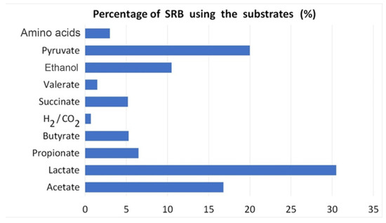 Gibson et al., 1988, found that SRB differ with regards to their substrate utilization sprectrum; Desulfovibrio spp. use lactate and H2, Desulfobacter spp. utilize acetate, Desulfobulbus spp. use propionate and H2, Desulfomonas spp. utilize lactate, and lastly, acetate and butyrate are used by Desulfotomaculum spp. [37].