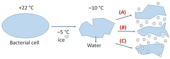 - Dumont, F.; Marechal, P.-A.; Gervais, P. Cell Size and Water Permeability as Determining Factors for Cell Viability after Freezing at Different Cooling Rates. Appl. Environ. Microbiol. 2004, 70, 268–272. [Google Scholar] [CrossRef] [PubMed] [Green Version]